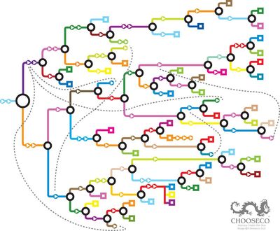 Christian Swinehart created a series of beautiful visualizations and an interactive essay about CYOA. (sadly, as I write this, it appears the animations are not working on his site, but it’s still worth a read).
