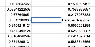 I feel the =RAND() creep into the formula bar. Before I shut down, I scratch into the adjacent cell, “I am the Dragon.”