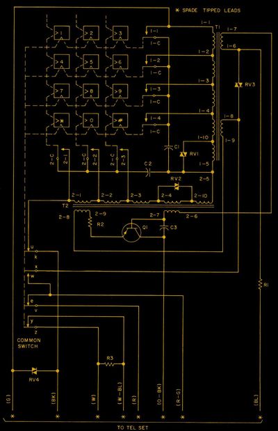 Suppose you squint hard enough at this schematic of the ubiquitous 35-Type DTMF keypad (via Telephone Collectors International). In that case, you might see how the keys relate to inductors that attenuate a single-transistor oscillator to produce the dual tones. I’m not an electrical engineer. Don’t quote me on this.